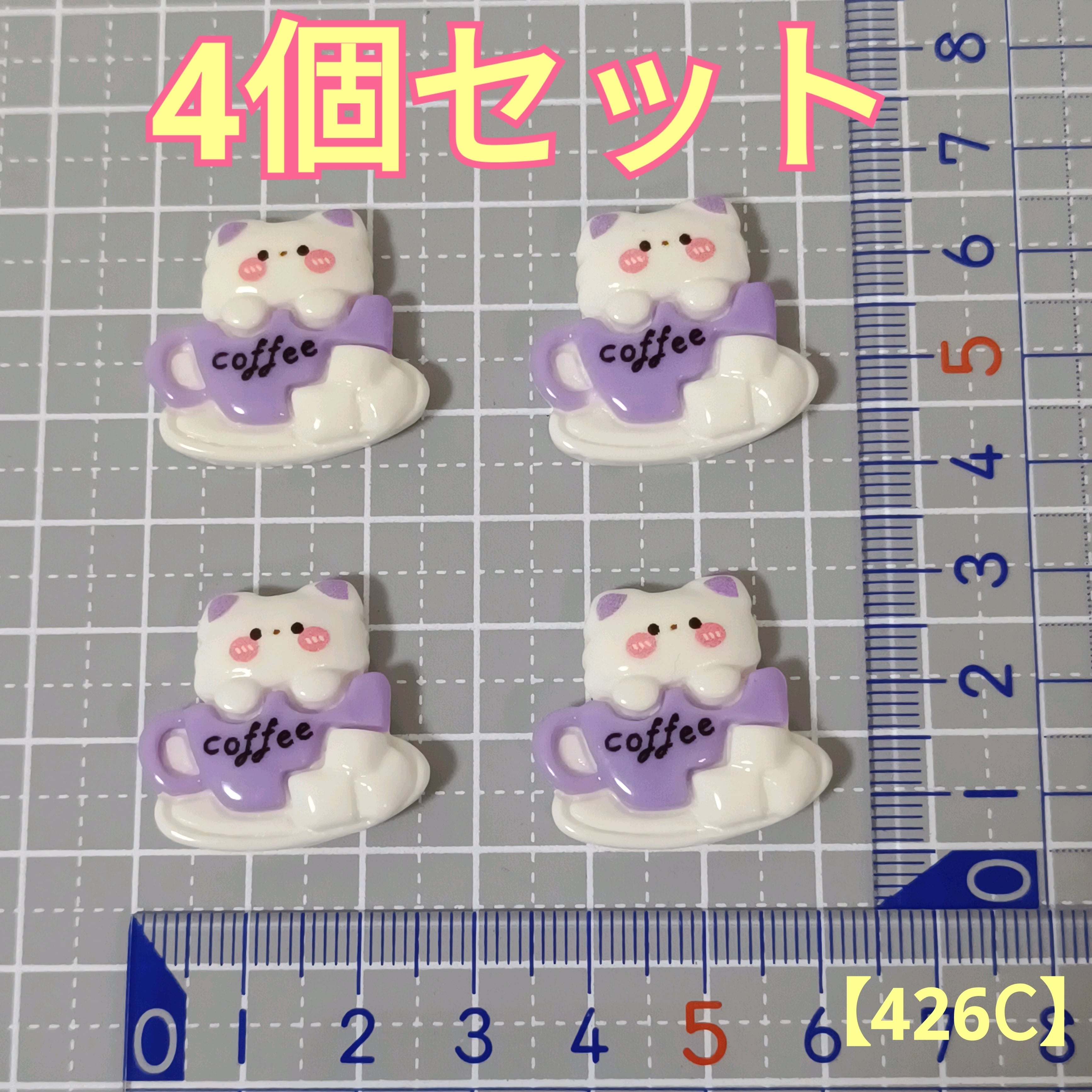 【426C】白ネコ デコパーツ デコレーションパーツ 4個セット
